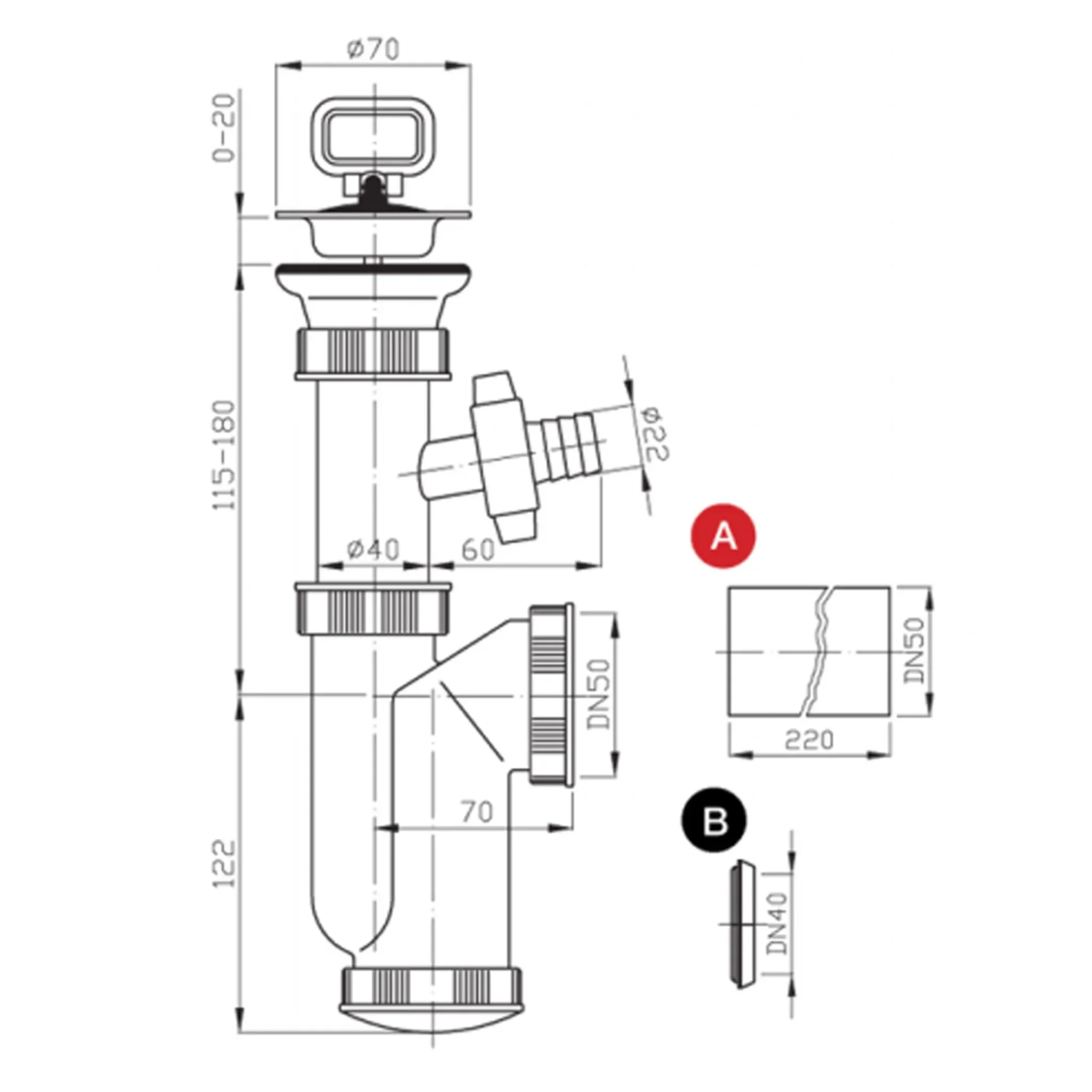 | Produkttyp | Spülen-Siphon mit Abzweig |